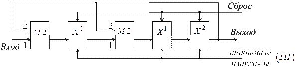 Рассмотрим схему деления на основе m-разрядного регистра сдвига. Строится схема по следующему правилу: