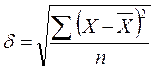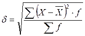Среднее квадратическое отклонение представляет собой корень квадратный их дисперсии и равно: