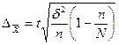 При случайном бесповторном и механическом отборе численность выборки вычисляется по формуле: