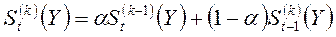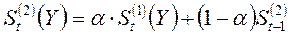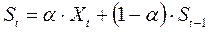 Каждое сглаженное значение рассчитывается путем сочетания предыдущего сглаженного значения и текущего значения временного ряда. В этом случае текущее значение временного ряда взвешивается с учетом сглаживающей константы.
