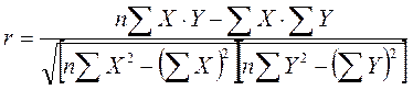 , то для изучения тесноты связи применяется линейный коэффициент корреляции «r»: