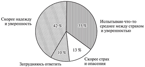 Рис. 22.1. Какие чувства вы испытываете, думая о будущем страны? (один вариант ответа, закрытый вопрос)