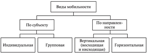 - индивидуальную мобильность, когда перемещения вниз, вверх или по горизонтали происходят у одного человека независимо от других,