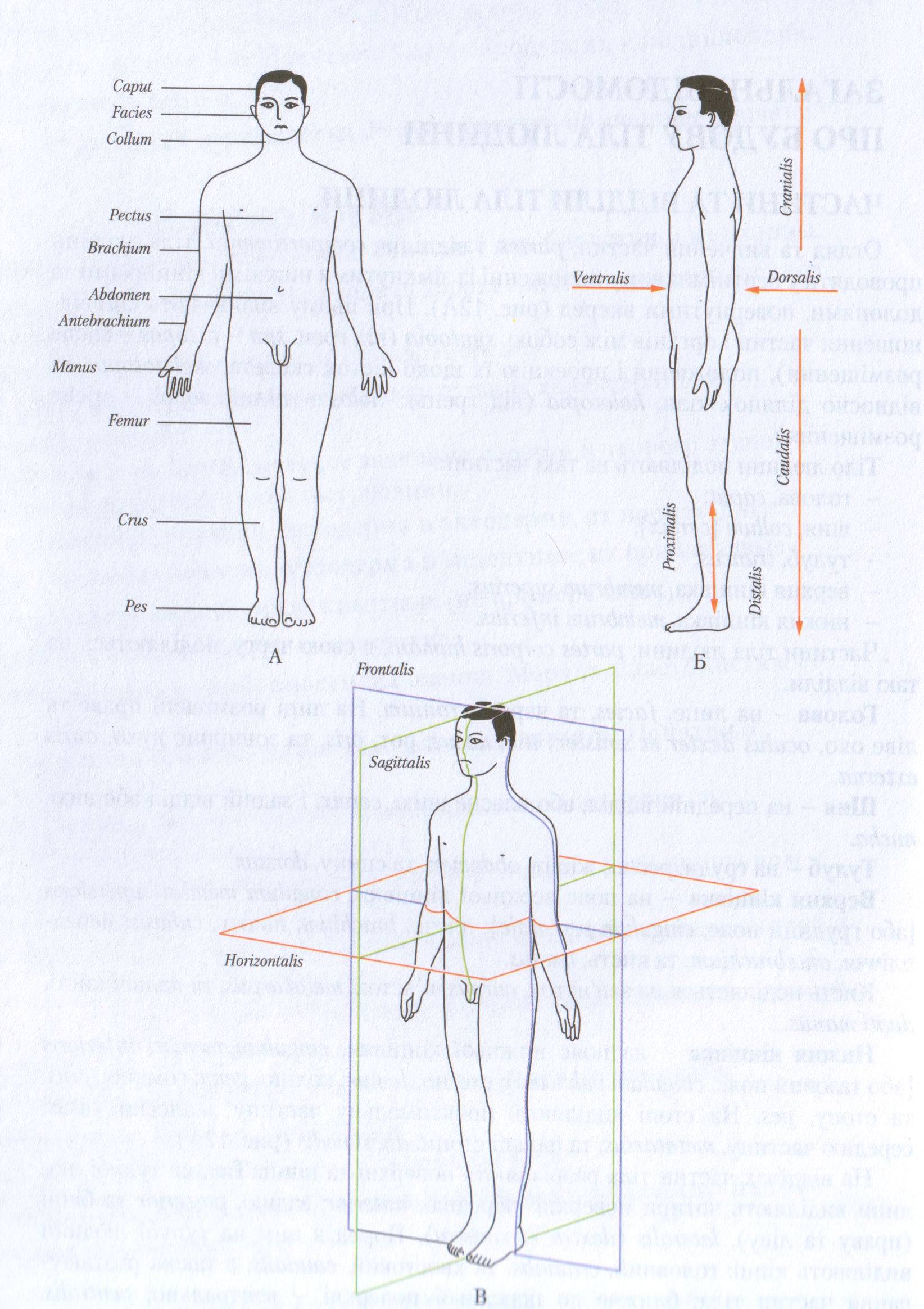 Рис. 1.3. Части и отделы тела человека, поверхности и концы.