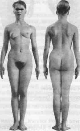 Половые признаки. Половые различия в пропорциях тела человека: у женщин несколько уже плечи и значительно шире таз, немного короче руки и ноги, а туловище длиннее. Грудная клетка у женщин короче и уже, чем у мужчин. У женщины жировая ткань развита гораздо сильнее, чем у мужчины (рис. 6). Половые признаки, отличающие мужчину от женщины, делятся на первичные и вторичные. К первичным относятся органы размножения, в первую очередь, половые железы, наличием которых определяется пол; остальные признаки относятся к вторичным. Характерным вторичным половым признаком у женщины являются развитые молочные железы, которые у мужчин находятся в зачаточном состоянии. Кожа мужчины толще и грубее, к тому же более волосиста (особенно на лице).