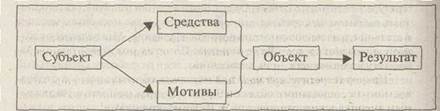 Субъект — объект — средства — мотивы — результат.