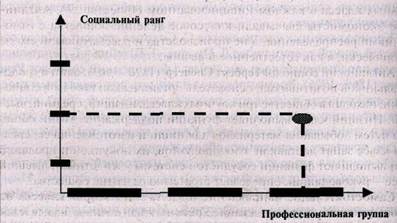 Схема 8.1. Теория классов Р. Вормса. Классовое положение индивида регистрируется по двум измерениям — профессиональному и ранговому