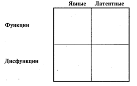 Сделаем вывод: социальные институты имеют явные и латентные (скрытые) функции. Латентные функции тем отличаются от дисфункций, что они не наносят вреда. Они показывают, что пользу от любого института можно извлечь гораздо большую, нежели об этом официально заявляется.