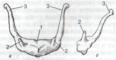Рис. 3.20. Подъязычная кость (а – вид сверху; б – вид сбоку).