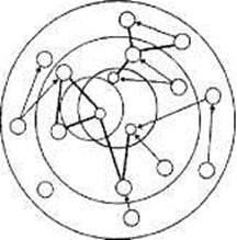 соииограммы, графически изображающей полученные результаты или в форме разнообразных социометрических индексов, дающих количественное представление о положении индивида в группе, а также оценку группы в целом (И.П. Волков, 1970,1977; И.Г. Кокурина, 1981; В.И. Паниотто, 1975). Социометрические индексы делят на две группы: индивидуальные и групповые. К индивидуальным показателям относят: социометрический статус — величина позитивности или негативности отношения группы к отдельному ее члену, которая определяется отношением количества выборов и отклонений, которые получил индивид, к их максимально возможному числу. Индекс эмоциональной (психологической) экспансивности — степень активности индивида во взаимодействии с другими членами группы, потребность в осуществлении контактов с ними. Он рассчитывается как отношение количества сделанных индивидом выборов и отклонений относительно членов группы к их максимально возможному числу. Для характеристики позиции индивида в группе вычисляют и другие индексы, например, «предписанная роль» (СЕ. Поддубный, 2001), приемлемость индивида группой (Н.В. Бахарева, 1970) и др. Однако главная сложность состоит б их интерпретации, сопоставлении их с известными социально-психологическими понятиями. К наиболее популярным групповым индексам относят: показатели групповой экспансивности (интенсивность группового взаимодействия), интегрированное™ группы (степень включенности в общение членов группы в конкретном виде деятельности или ситуации), сплоченности и ряд других. Графический анализ данных осуществляется путем построения социограмм. Последняя позволяет наглядно выделить в составе исследуемого коллектива подгруппы (группировки), положительные, конфликтные или напряженные «участки» внутри групповых отношений, «популярных» его членов (индивиды, имеющие максимальное количество выборов) либо «отвергаемых» (индивиды, получившие максимальное количество отклонений), определить лидера группы. Различают два вида социограмм: коллективную и индивидуальную. Наиболее часто для отображения структуры отношений в группе применяют социограмму-мишень (Нортвей, 1952) Она представляет собой несколько концентрических кругов (рис. 2), в центр которых помещают «популярных индивидов, в наружное кольцо — «отвергаемых», во внутреннее кольцо — «средне популярных*.