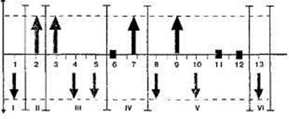 Рис 5 1 (1) — чувствительность болевая слуховая, обонятельная, кинестетическая II (2) — сила мышечного напряжения (энергетика) III (3, 4, 5) — BHHvidHHe продуктивное] i>, обьем, концентрация IV (6, 7) — память кратковременная, долговременная V(8, 9. 10, И, 12)— простая интеллектуальная деятельность (8) — арифметические действия напрагленные ассоциации (9 — по сходству, 10 — по контрасту), 11 — свободные ассоциации, (12)— ассоциации с зчдерлкол, те одни ассоциации записываются, другие пропускаются VI (13) — счожиая интеллектуальная деятельность («решение проблем*