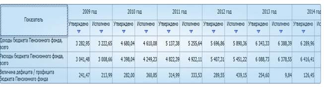 Показатели бюджета Пенсионного фонда, млрд. руб.