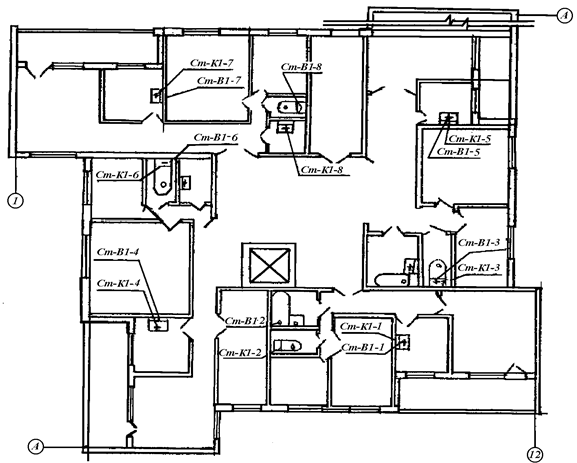 Все стояки должны быть промаркированы и пронумерованны согласно стандартной маркировке: Ст. В 1-1, Ст. В 1-2 и т.д.