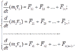Рассмотрим изолированную механическую систему, состоящую из n тел с массами m1, m2,…, mn. Обозначим скорости этих тел через