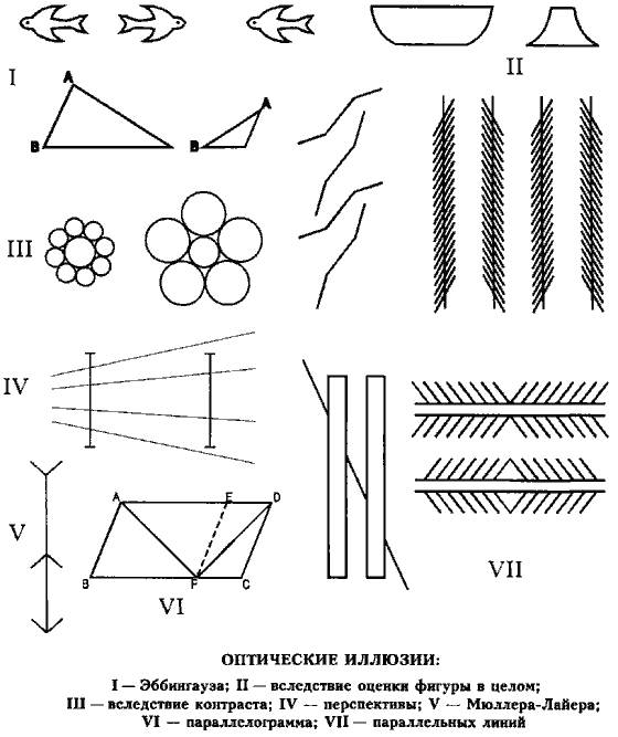 Если от таких объяснений перейти к более общему обоснованию, то можно будет принять в качестве гипотезы то положение, что иллюзорное восприятие абстрактных геометрических фигур обусловлено приспособленностью к адекватному восприятию реальных объектов.