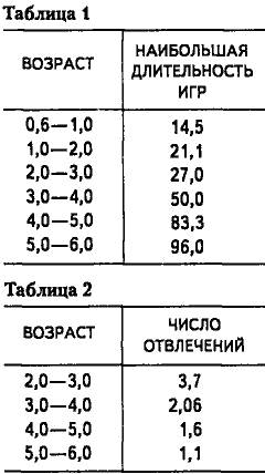 Развитие устойчивости детского внимания вслед за Гетцер изучал Бейрль, определяя, какова в среднем максимальная длительность детских игр в различные возрасты. Результаты этого исследования дает таблица 1.