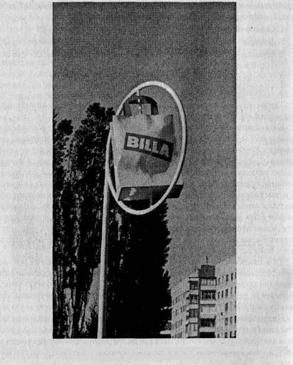 К внешним средствам необходимо отнести наружные вывески, световые табло и внешние (в том числе отдельно стоящие) витрины розничных торговых предприятий. Основная задача этих средств — стимулировать посещение покупателем торговой точки. Иногда в этих целях используются айстоперы (англ. eye stoper, eye appeal; дословно: останавливатель глаза, призыв для глаза) — предметы, находящиеся ' в непосредственной близости от магазинов и привлекающие непроизвольное внимание потенциальных покупателей. Броскость айстопера может быть достигнута за счет оригинальности решения, динамичности, макета товара гипертрофированных размеров, который продается в данном магазине (так называемый бликфанг), и т. п. Пример айстопера показан на рис. 2.16.