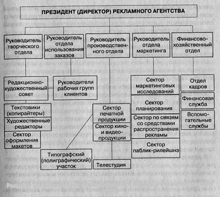 Рис. 4.9. Организационная структура крупного рекламного агентства полного