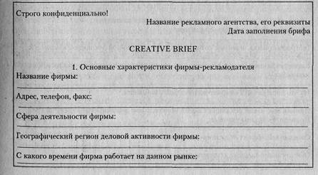 3. Заполните образец креативного брифа для гипотетической рекламной кампании своего товара: