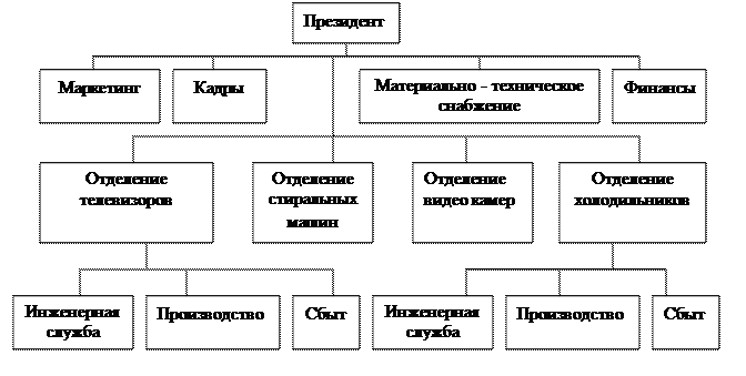 Один из наиболее распространенных способов развития фирм состоит в том, что они увеличивают ассортимент производимой и реализуемой продукции. Если управление этим процессом осуществляется успешно, то несколько продуктовых линий могут достигнуть настолько высокого объема продаж, что сами могут потребовать существенной структуризации и окажутся решающим фактором успеха организации в целом. Именно с этой проблемой и столкнулись пионеры дивизиональной структуры из «Проктер энд Гембл» и «Дженерал Моторс». Решение было найдено при помощи дивизионально-продуктовой структуры организации, в которой создавались отделения по основному продукту. В настоящее время эту структуру используют большинство крупнейших производителей потребительских товаров с диверсифицированной продукцией.