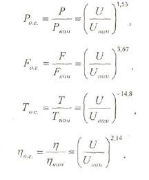 Практический интерес представляет зависимость потребляемой двигателем активной и реактивной мощности от напряжения на его выводах.