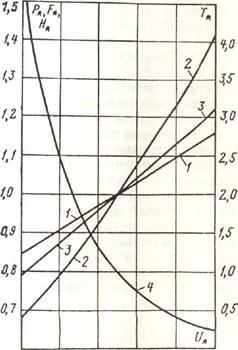 При изменении напряжения изменяется механическая характеристика АД - зависимость его вращающего момента М от скольжения s или частоты вращения (рис.4.1). С достаточной точностью можно считать, что вращающий момент АД пропорционален квадрату напряжения на его выводах. При снижении напряжения уменьшается вращающий момент и частота вращения ротора двигателя, так как увеличивается его скольжение (от значения sh до s,). Пи постоянном моменте сопротивления Мс зависимость частоты вращения ротора двигателя от напряжения имеет вид где n с — синхронная частота вращения;