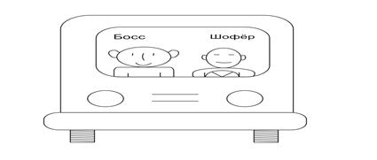 | Менеджер (босс) - приобретение автомобиля (ресурсы) - наем шофера (мотивация) - деньги на бензин (ресурсы) - ремонт и обслуживание - гараж - куда ехать (цель, маршрут) - контрольный параметр (время, безопасность и т.п.) | Управленец (шофер) - контроль дороги - контроль показаний приборов - выполнение необходимых корректирующих и предупреждающих действий (управление рычагами и рулем) |