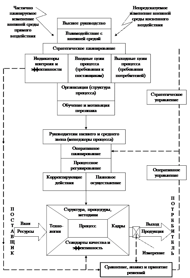 При оперативном управлении по горизонтальной цепи функция контроля отслеживает выполнение планов, заданных вертикальной цепью. И если не удается добиться реализации заданных планов, могут разрабатываться не только меры воздействия на производство, но и меры по корректировке ранее принятых планов и других функций вертикальной цепи. Может также корректироваться организация работ, обучение и мотивация персонала.