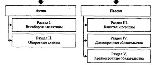 Взаимосвязь отдельных разделов бухгалтерского баланса можно представить в виде схемы