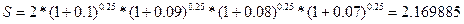 4) =…= =10% - % прост. | S=2*(1+0,1)=2.200000 |