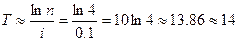 Пример. За сколько лет при ставке 10% годовых вклад вырастет в 4 раза по схеме простых (сложных) процентов?