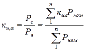 называется средневзвешенное, по номинальной активной мощности, значение коэффициентов включения всех приемников, входящих в группу, определяется по формуле: