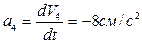Знак ускорения не совпадает со знаком скорости, следовательно, рейка движется замедленно.