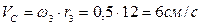 Скорость точки С, расположенной на колесе 3, находим по формуле