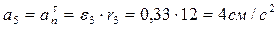 5.Ускорение груза 5 равно касательному ускорению точки N колеса 3: