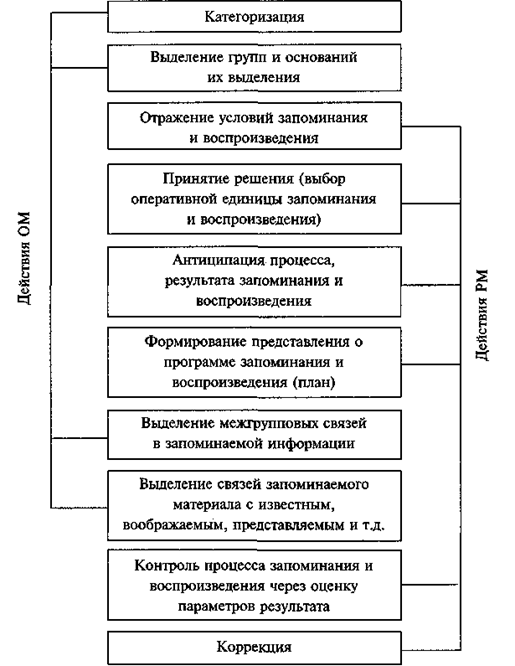 Эти действия составляют основу регулирующих механизмов мнемических способностей. Процессы регуляции мнемической деятельности подразделяются на несколько блоков: