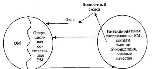 Программа действий рассматривается как часть сложного акта регуляции. Затронутые выше регулирующие действия выступают своеобразным внутренним контролем, присущим системе функциональных и операционных механизмов мнемических способностей, который, в свою очередь, регулируется процессами цел е-полагания и мотивации. При этом цель является ключевым образованием регуляции, превращающим ее в механизм, соединяющий в функциональном единстве личностные и интеллектуальные структуры.