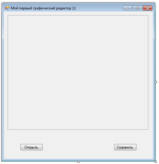 Для кнопок «Открыть» и «Сохранить» создайте свои обработчики события. Также создайте обработчик события Load для формы. Для элемента управления picturebox1 создайте обработчики события MouseDown, MouseMove. Код приложения будет выглядеть следующим образом: