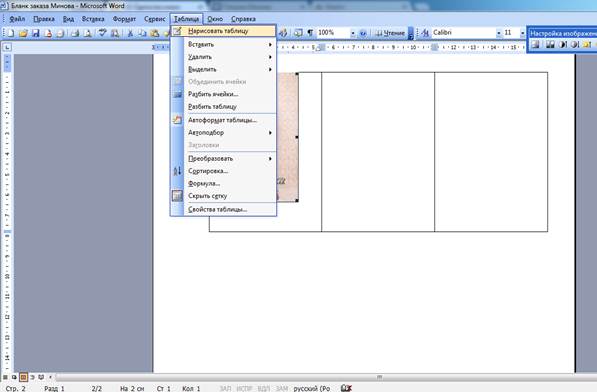 1. В Бланке заказа Минова прокручиваете документ вконец таблицы и выбираете "Таблица"-"Нарисовать Таблицу":