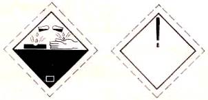 | Класс 8 | Едкое вещество 8.1; 8.2 или 8.3 (белым цветом) | |