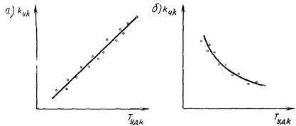 8- Для выбора вида функции рекомендуется следующий способ: на график с осями RЧК и Тудк (см. рисунок) выносят статистические данные указанных показателей; соединив плавной кривой нанесенные точки, визуально определяют вид функции, например: