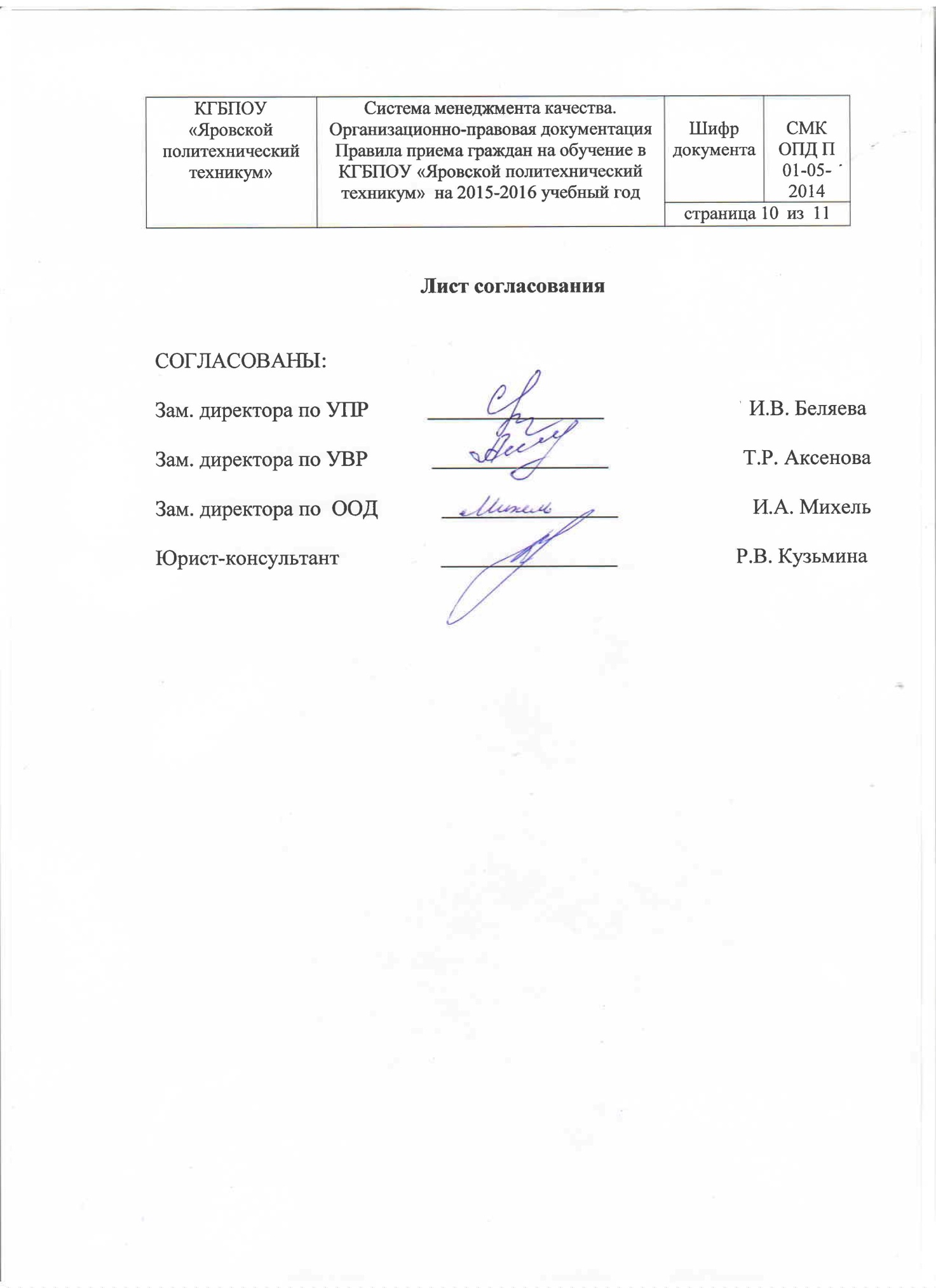 | КГБПОУ «Яровской политехнический техникум» | Система менеджмента качества. Организационно-правовая документация Правила приема граждан на обучение в КГБПОУ «Яровской политехнический техникум» на 2015-2016 учебный год | Шифр документа | СМК ОПД П 01-05-2014 |