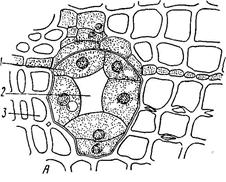 1 – выстилающие клетки, 2 – межклетник, 3 - трахеиды