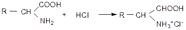 Благодаря амфотерным свойствам белок ведет себя как кислота, вступая в реакцию с основанием: