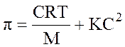 Растворы ВМС, как и коллоидные растворы, не подвергаются диализу, т.е. не проходят через полупроницаемую мембрану. Через мембрану проходят только молекулы растворителя, создавая при этом осмотическое давление. Кровь, лимфа, тканевые жидкости человека представляют собой водные растворы макромолекул и ионов многих веществ (КСI, NaCI и др.). Их суммарное осмотическое давление при 37о составляет 7,7 атм. Это давление является суммой давлений всех растворенных в плазме крови веществ, в том числе и белков. Особое значение в водном обмене между кровью и тканевой жидкостью имеет часть общего осмотического давления, которая обусловлена ВМС - белками. Эта часть осмотического давления называется онкотическим давлением. Оно невелико, составляя в норме всего около 0,004 атм.(т.е. в 200 раз ниже осмотического давления) и тем не менее играет определенную роль в биологических процессах. Онкотическое давление растворов ВМС значительно увеличивается с ростом концентрации и может быть рассчитано по уравнению Галлера: