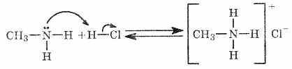 Амины, являясь производными аммиака, имеют сходное с ним строение и проявляют подобные ему свойства. Амины, как и аммиак, обладают основными свойствами, а значит, способны взаимодействовать с кислотами с образованием соответствующих аммониевых солей.