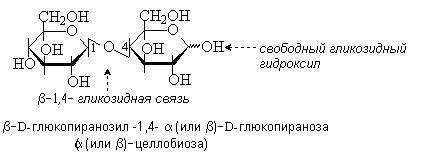 Целлобиоза – продукт неполного гидролиза целлюлозы, клетчатки. Молекула целлобиозы состоит из двух остатков β-D-глюкопиранозы, связанных β-1,4-гликозидной связью. Целлобиоза – восстанавливающий дисахарид.