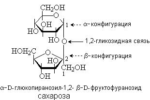 1) за счет полуацетального гидроксила одного моносахарида и спиртового гидроксила другого моносахарида;