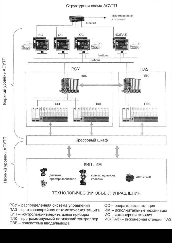Внедрение АСУ является прогрессивным направлением в области автоматизации. При большом расстоянии между технологическими аппаратами и пунктами управления целесообразно вместо инерционных пневматических средств автоматизации применять электрические средства автоматизации (ЭСА). Многие химические производства относятся к числу взрывопожароопасных и автоматизация осуществляется на основе использования взрывозащищенных средств автоматизации с использованием контроллеров и станций управления на базе персональных компьютеров (ПК). "Интеллектуальная революция" - так можно охарактеризовать сегодняшнее положение дел в области использования и применения сложных высокотехнологичных устройств. Новейшие достижения микропроцессорной техники пришли к нам из-за рубежа и привели к масштабному применению микропроцессоров практически в каждом электронном устройстве: телефонах, видеокамерах, диктофонах и многих других полезных вещах. Газовики и нефтяники, энергетики и химики, машиностроители и пищевики - уже нет ни одной отрасли, где не были бы установлены и внедрены датчики давления нового поколения. Сейчас эти потребители в полной мере ощутили все преимущества интеллектуальных приборов. Однако в отечественной промышленной автоматизации подобный процесс происходит не так быстро. За рубежом разработана новая технология HART-протокол (Highway – путь; Addressable- адрес; Remout- действие на расстоянии; Transduser - через, по ту сторону). Протокол это список согласованных правил выполнения определённых процедур (программ). Для новой технологии HART-протокол характерна регулярная самодиагностика в процессе эксплуатации. Востребованы не только новые приборы для измерений, но и новые средства коммуникации: HART-модемы, HART-коммуникаторы, HART-мультиплексоры, программное обеспечение для связи с компьютером. При таком комплексном подходе экономический эффект использования интеллектуальных приборов стал еще очевиднее - отдача от вложений в основные средства повысилась многократно. При использовании ЭСА, контроллеры и ПК применяются, во-первых, для облегчения работы оператора, т.к. за короткий промежуток времени обрабатывают большое количество информации; во-вторых могут выполнять роль «советчика», при котором рекомендуют оператору оптимальные знания режимных параметров процесса и, в третьих, сравнивая текущие знания с заданными, выдают корректирующий сигнал на регулятор или непосредственно на исполнительный механизм. Одновременно технология HART-протокола позволяет по одной паре проводов передавать и аналоговый (4-20)мА, и цифровой сигналы, что даёт возможность использовать уже имеющиеся коммуникации для аналоговых сигналов. Коммуникационный протокол HART обеспечивает двухсторонний обмен информацией между интеллектуальным датчиком и управляющими устройствами: ручным портативным HART-коммуникатором Метран-650; компьютером, оснащенным HART-модемом Метран-681 и программой H-Master. «Метран» - единственная компания в России, реализовавшая комплекс интеллектуальных датчиков с международным (поддерживаемым более чем 150 производителями) протоколом обмена данными HART и русскоязычные средства коммуникации для удаленной диагностики и настройки прибора. Ниже представлена соответствующая структурная схема автоматизированной системы управления технологи
