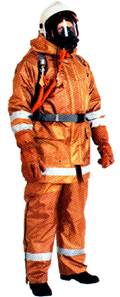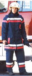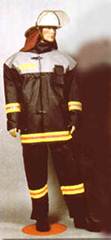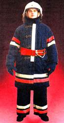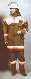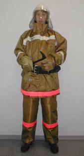Боевая одежда пожарного (БОП), согласно НПБ 157-99 - одежда, предназначенная для защиты тела человека от опасных и вредных факторов окружающей среды, возникающих при тушении пожаров и проведении связанных с ними первоочередных аварийно-спасательных работ, а также от неблагоприятных климатических воздействий. Материал верха боевой одежды пожарного - наружный слой пакета материалов, используемых для изготовления БОП, который обеспечивает защиту тела пожарного от высоких температур окружающей среды, тепловых потоков, открытого пламени, контакта с нагретыми поверхностями, физико-механических воздействий, воды и агрессивных сред. Водонепроницаемый слой боевой одежды пожарного - слой, который входит в состав пакета материалов, используемых для изготовления БОП, и предназначен для защиты теплоизоляционной подкладки БОП от проникновения воды, растворов с добавками поверхностно-активных веществ и агрессивных сред. Теплоизоляционная подкладка боевой одежды пожарного - слой, который входит в состав пакета материалов, используемых для изготовления БОП, обладает низкой теплопроводностью и предназначен для защиты от конвективного тепла, а также от неблагоприятных климатических воздействий. БОП, согласно НПБ 157-99, подразделяют по уровню защиты от тепловых воздействий.